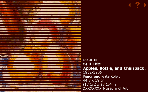 Title: Type of Project: Design Discussion: Each detail would be accompanied by information about the painting and a hyperlink to the museum or collection where the painting resides. The details would be rooted in a color palette of reds, yellows, and browns. Rejection Rationale: Too many museums failed to respond to my requests, while others chose not to give me permission to use details of the paintings. |